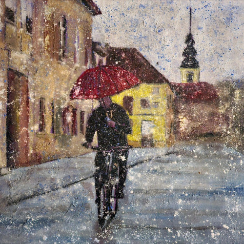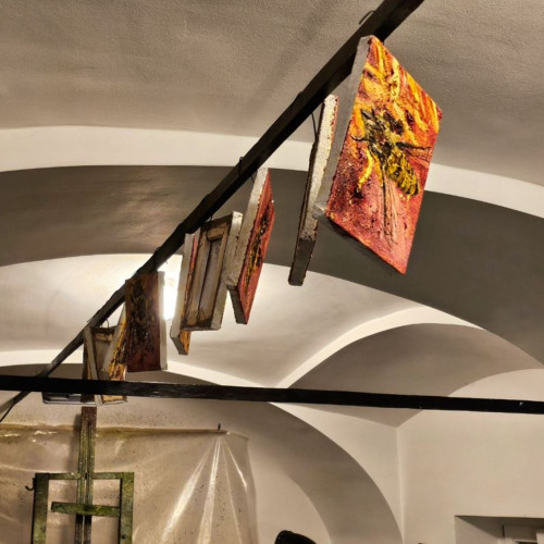 Landschaften, die sich verdrehen, wenden, herumgewirbelt und auseinandergerissen werden. Oder auch mit dem Himmel und dem Wasser verschmelzen oder hinter Klippen verschwinden. Und auch Überschwemmungen kommen vor. So zeigen sich die unverkennbaren Gemälde von Gregor Pratneker aus Slowenien. Dabei sieht der Künstler den Malprozess als Zugang zu seinem inneren Leben und den eigenen Reaktionen auf oft aufreibende globale Ereignisse. Indem er Farbe über und um eine Oberfläche bewegt, werden Wetter- und geologische Prozesse zu Veränderern, die auf Landformen wirken, die tief aus seinen inneren Erinnerungen stammen. Dabei schlendert seine Kunst nicht durch die Landschaft und beschreit Momente, sondern fängt Prozesse ein, die Veränderung und Bewegung darstellen.