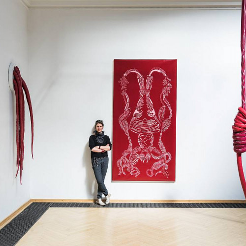 Die in Klagenfurt geborene bildende Künstlerin Ina Loitzl beschäftigt sich in ihrer Arbeit vorrangig mit dem Schneiden. Im Video, textil und auch mit der Schere. Dabei ist auch der Raum installativ ein immer wiederkehrendes Thema. Es geht ihr nie um das Malen, wie mit einem Pinsel und Tupfen oder das Fließenlassen von Farbe, sondern um den wortwörtlichen harten Schnitt, der für sie die Lebensphasen repräsentiert.